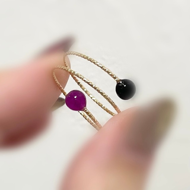 浦和パルコでの お客様オーダー品 黒と赤紫の石 3連コッパーワイヤーリング