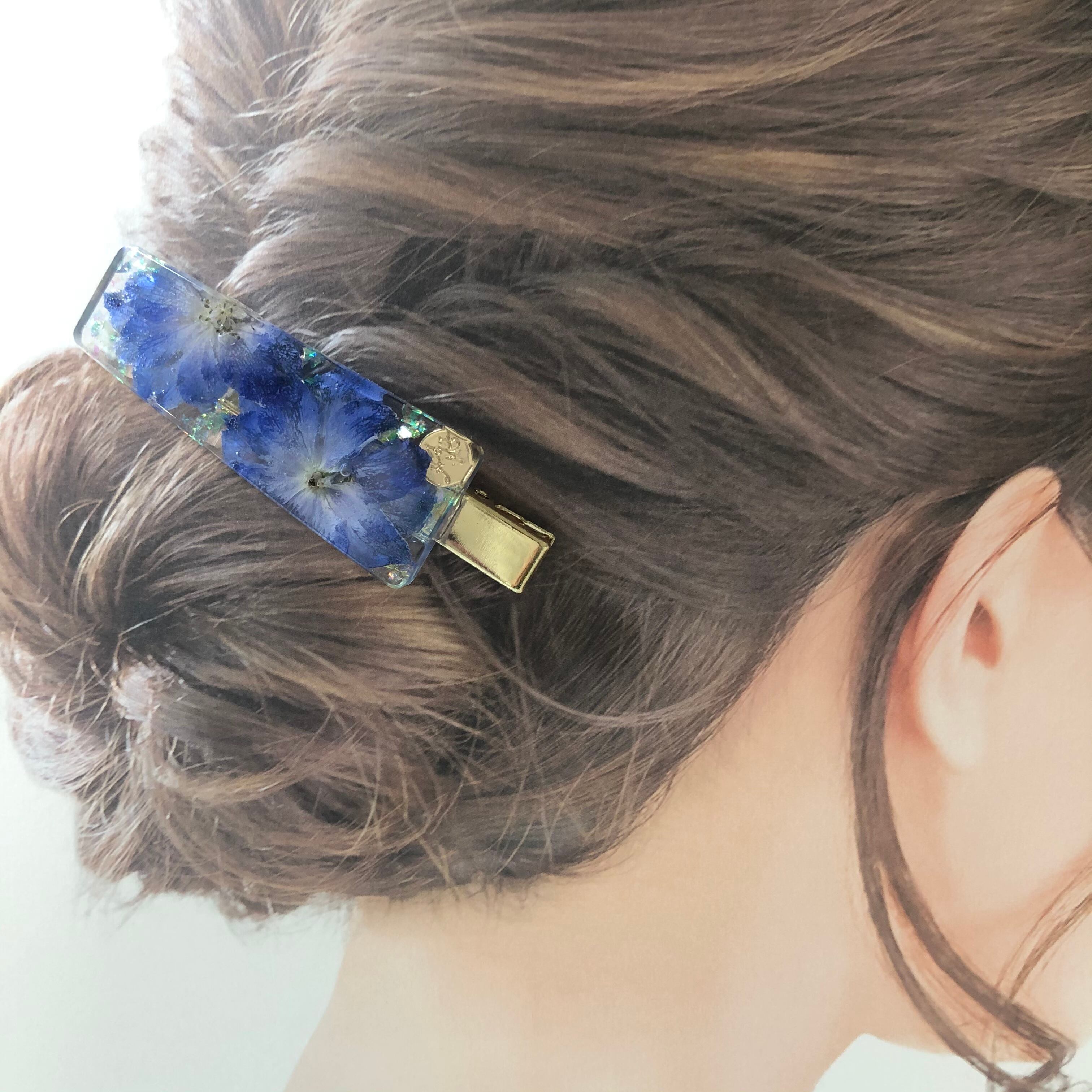 ブルー千鳥草ヘアクリップ
